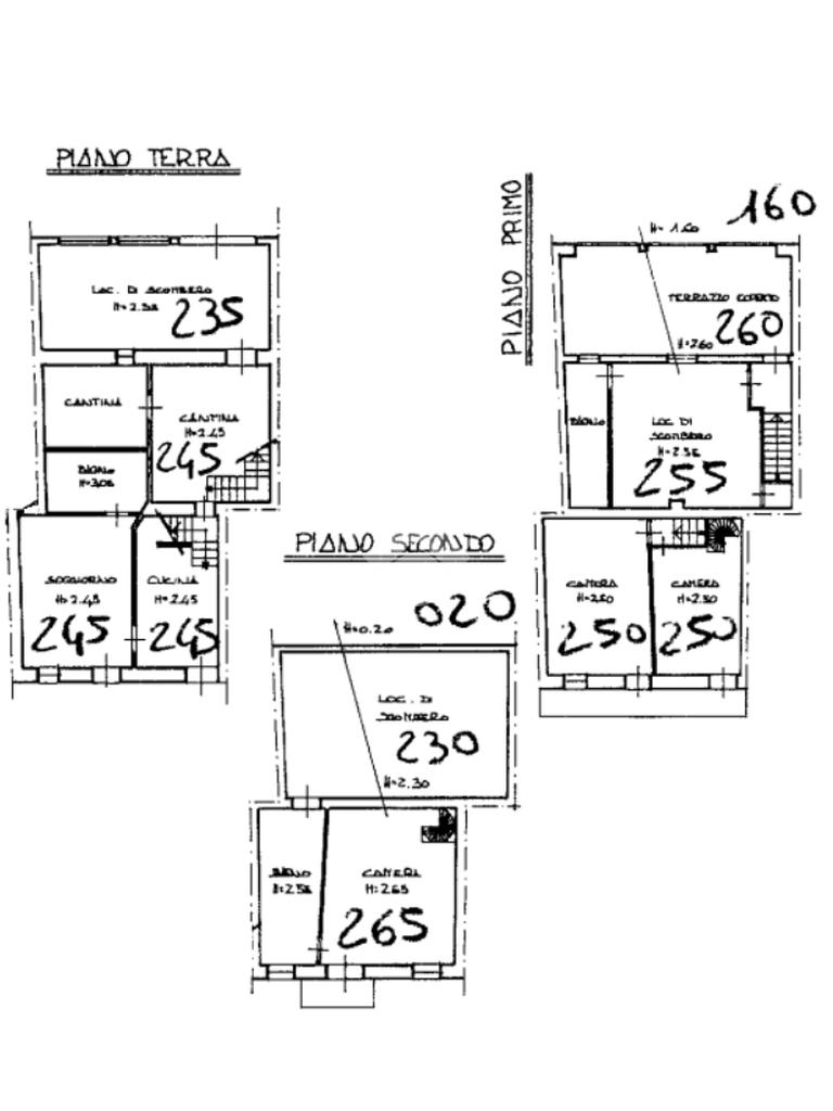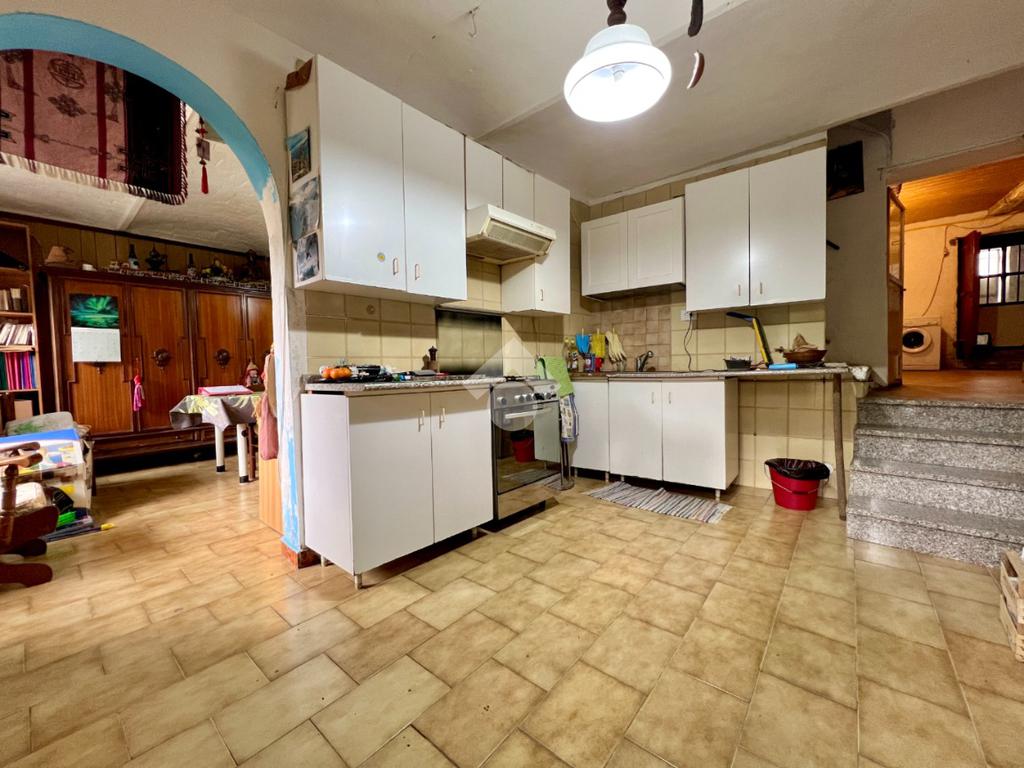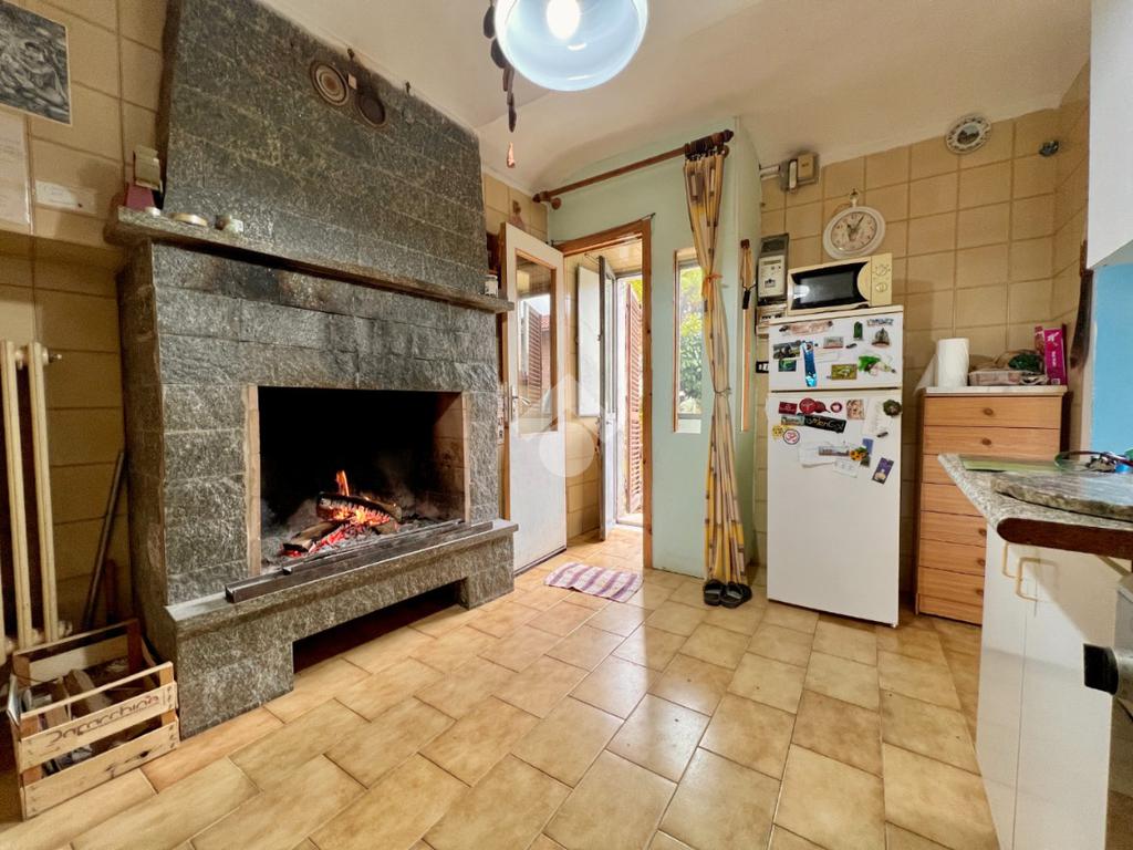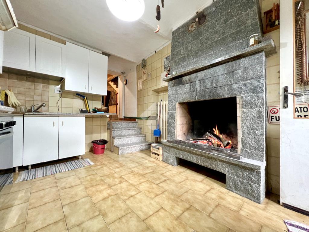 L’ingresso è sulla cucina abitabile con camino a legna, affiancata dalla sala da pranzo. Al piano terra si trovano anche un bagno finestrato con vasca, due cantine collegate e un locale di sgombero. Salendo al piano superiore si accede a un terrazzo coperto e a una camera con bagno privato. I piani successivi ospitano due camere da letto, un’ulteriore camera con balcone e un secondo bagno.