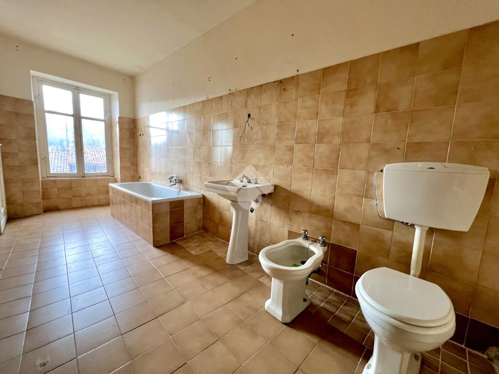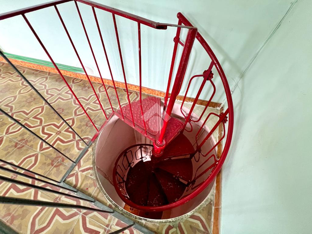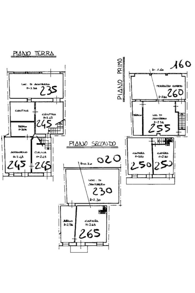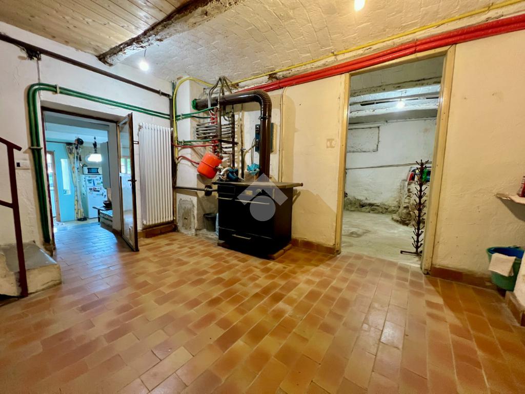 L’ingresso è sulla cucina abitabile con camino a legna, affiancata dalla sala da pranzo. Al piano terra si trovano anche un bagno finestrato con vasca, due cantine collegate e un locale di sgombero. Salendo al piano superiore si accede a un terrazzo coperto e a una camera con bagno privato. I piani successivi ospitano due camere da letto, un’ulteriore camera con balcone e un secondo bagno.
