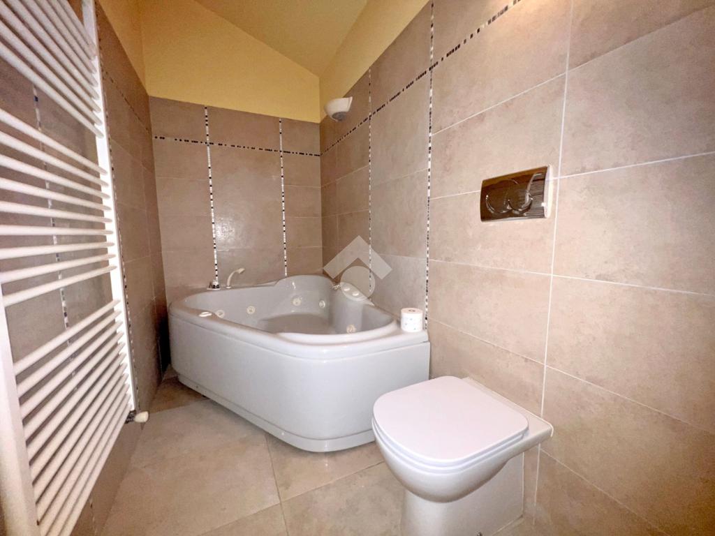 L’ingresso è diretto sulla cucina abitabile, separata da un soggiorno spazioso che offre un ambiente rilassante e confortevole. Al piano terra sono presenti anche un bagno con vasca idromassaggio e una cantina ampia, utile come spazio di servizio o dispensa.
