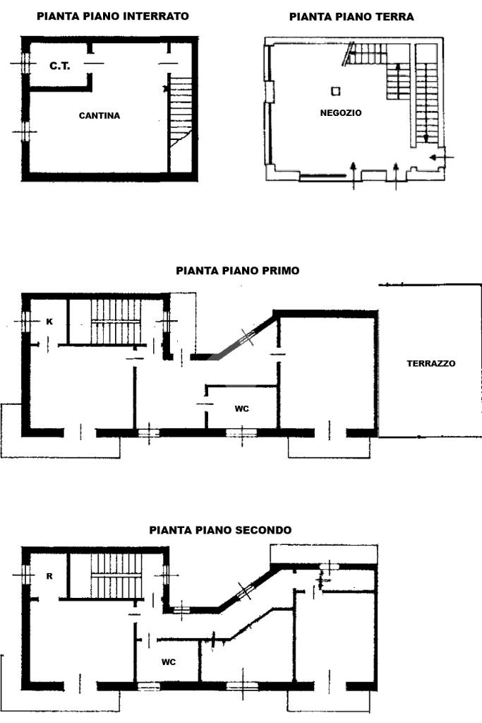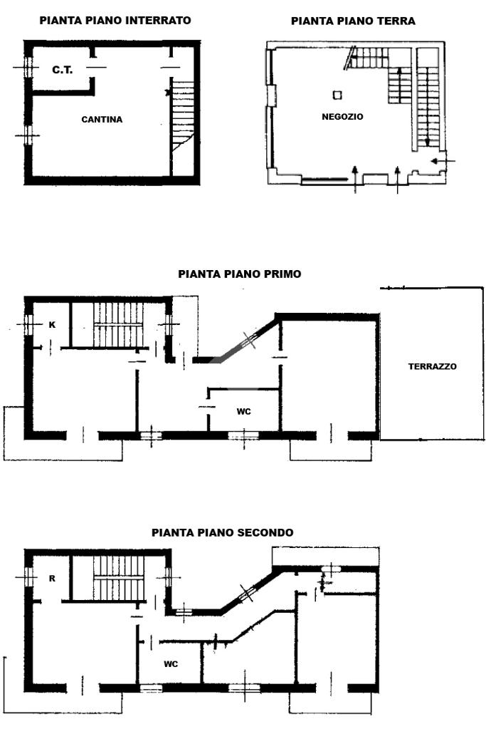 L'immobile è stato costruito nel 1969 e si sviluppa su più livelli e offre spazi ben distribuiti. Il negozio al piano terra è di 35 mq e dispone di una scala interna che separa i due alloggi posti ai piani superiori, di 80 mq ciascuno. Il primo alloggio è al piano primo ed è composto da un ingresso, un tinello ed una cucinotta, una camera da letto ed un bagno. Un poetico terrazzo dotato di una meridiana è a disposizione del piano primo. Il secondo alloggio è al secondo piano ed è composto da quattro camere da letto ed un bagno. E' presente al piano interrato una cantina con il vano caldaia.