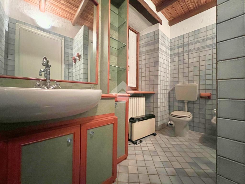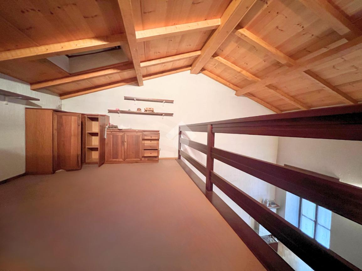 La palazzina è stato costruita nel 1969 e si sviluppa su più livelli e offre spazi ben distribuiti. Il negozio al piano terra è di 35 mq e dispone di una scala interna che separa i due alloggi posti ai piani superiori, di 80 mq ciascuno. Il primo alloggio è al piano primo ed è composto da un ingresso, un tinello ed una cucinotta, una camera da letto ed un bagno. Un poetico terrazzo dotato di una meridiana è a disposizione del piano primo. Il secondo alloggio è al secondo piano ed è composto da quattro camere da letto ed un bagno. E' presente al piano interrato una cantina con il vano caldaia. Entrambi gli alloggi sono originali rispetto alla costruzione, ma il primo piano è dotato di doppi vetri. Il tetto è stato ripassato recentemente. Il riscaldamento è alimentato da radiatori di una vecchia caldaia a gasolio che si puo sostuire con un'alimentazione a metano o pellet.