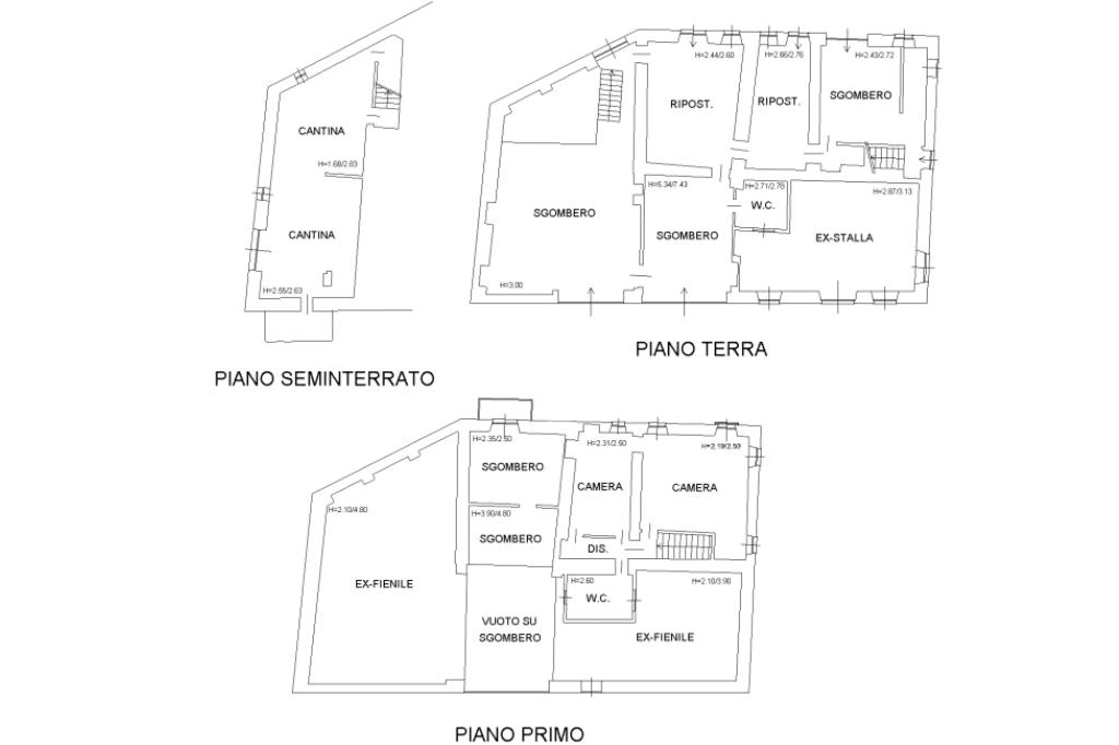 Al primo piano troviamo una cucina dotata di stufa a pellet, una camera da letto e un bagno finestrato con doccia, attualmente abitabili.
