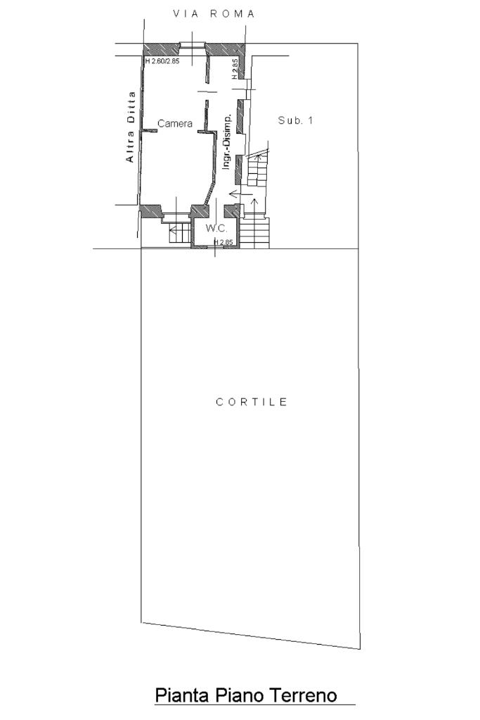 Attualmente la proprietà è suddivisa in due alloggi indipendenti, soluzione ideale sia per uso investimento, con la possibilità di metterla a reddito, sia per ospitare due nuclei familiari. Sono presenti due ingressi separati: uno direttamente dalla strada, con accesso al piano terra, e uno dal cortile, da cui tramite scala si raggiunge il primo piano.